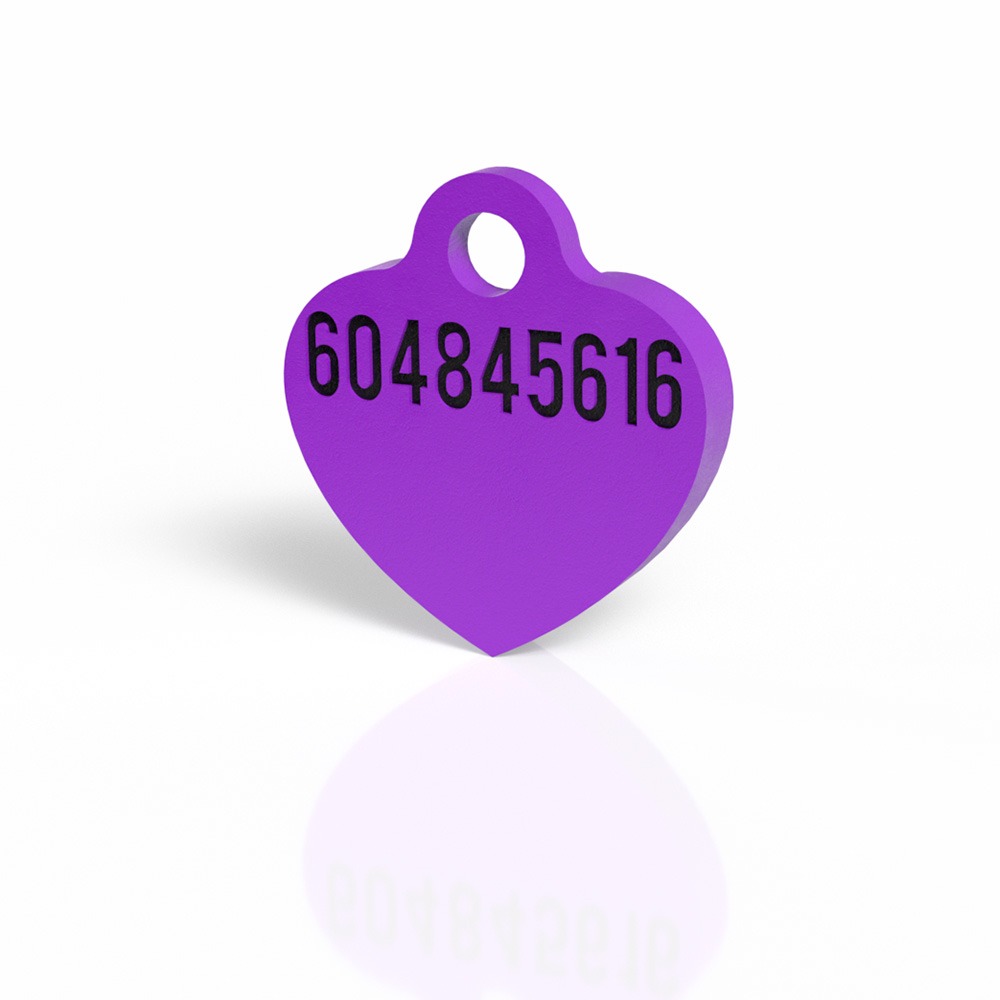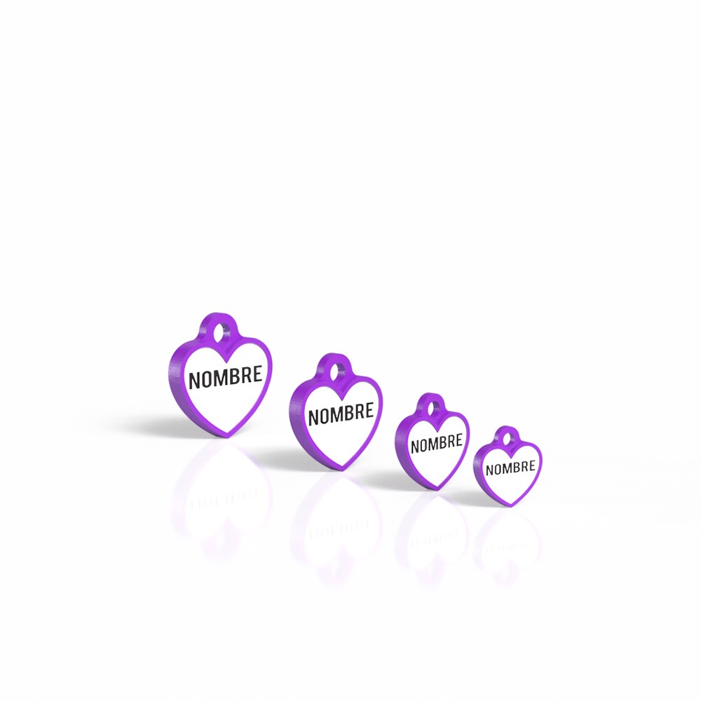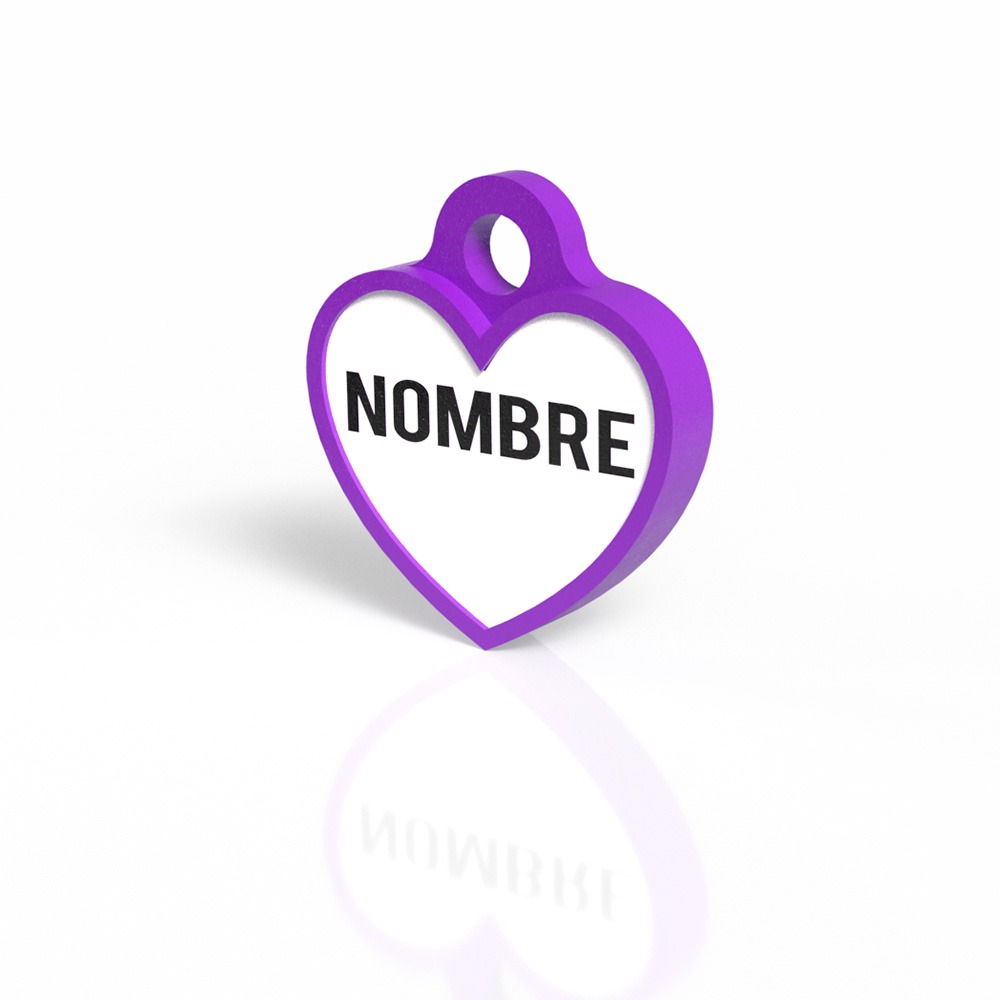La chapita identificativa en forma de corazón color morado es el accesorio perfecto para mantener a tu perro siempre identificado. Fabricada en material PLA biodegradable y resistente, combina diseño y funcionalidad. Personalízala con el nombre de tu mascota y tu número de contacto para mayor seguridad.