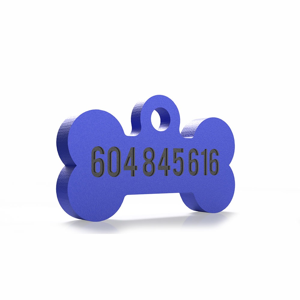 La chapita de huesito en azul eléctrico es perfecta para destacar y asegurar la identificación de tu perro. Su color moderno y llamativo garantiza visibilidad y seguridad en cualquier situación.