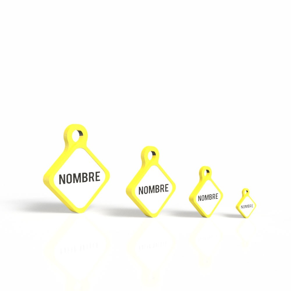 Con su elegante diseño en forma de rombo, esta placa identificativa combina funcionalidad y diseño. El color amarillo, vibrante y lleno de energía, simboliza la felicidad y hace que sea perfecta para perros que disfrutan de los días soleados y las aventuras al aire libre.