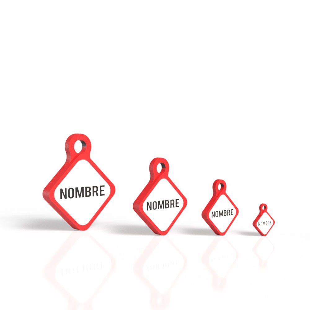 Con su diseño en forma de rombo, esta placa identificativa combina estilo y funcionalidad, siendo la opción perfecta para asegurar que tu perro esté identificado y protegido en todo momento. El color rojo, apasionado y brillante, destaca en cualquier ocasión y resalta la personalidad única de tu compañero.